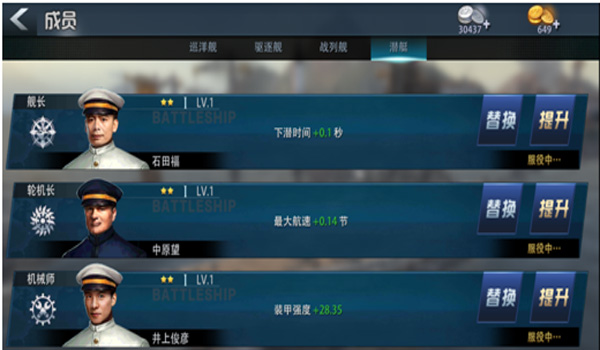 戰(zhàn)列艦:強(qiáng)在火力,弱在機(jī)動(dòng)力,如果想要進(jìn)一步提升火力的艦長(zhǎng),可以對(duì)成員中的“艦長(zhǎng)”“火炮手”來選擇提升,如果想要彌補(bǔ)短板,那么可以對(duì)成員中的“輪機(jī)長(zhǎng)”來進(jìn)行提升。