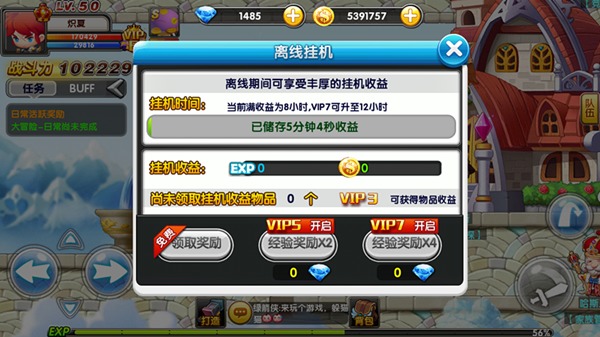 我們把任務(wù)、副本以及大冒險(xiǎn)做完之后,等級(jí)大概就到了27級(jí)左右。想快速升級(jí)的玩家就沒有必要在線刷怪,掛機(jī)或者聊天之類的。我們可以選擇離線掛機(jī),在時(shí)間到達(dá)之后,我們?cè)偕暇€領(lǐng)取經(jīng)驗(yàn)升級(jí),繼而完成新出現(xiàn)的任務(wù)。