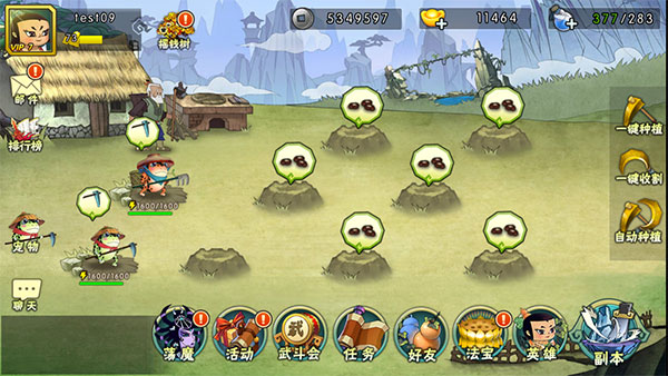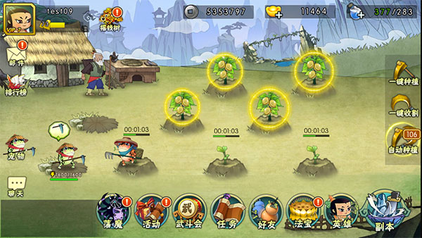 2、等到種子成長(zhǎng)成熟之后,我們就可以收割獲取相應(yīng)的道具了。當(dāng)然,在我們通關(guān)相應(yīng)的副本之后,還會(huì)開啟相當(dāng)方便的一鍵種植和一鍵收割的功能呦。