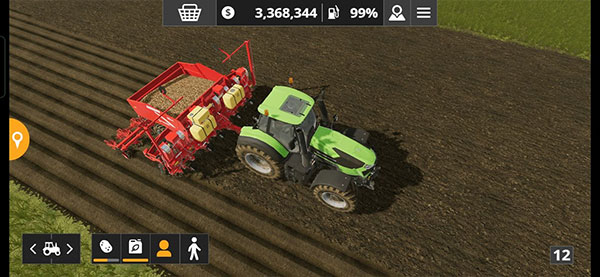 綠色拖拉機(jī)是芬特515c,后面有一臺播種機(jī),需要玩家自己掛接,操作非常簡單,游戲里只需要倒車就可以自動(dòng)連接了,這里是讓玩家熟悉農(nóng)機(jī)的接掛以及播種機(jī)的使用,除了部分高端播種機(jī)可以實(shí)現(xiàn)耕、播、施肥三合一,其他播種機(jī)只能在耕好的地上播種,像上面那塊茬地,初級的播種機(jī)是無法直接作業(yè)的。