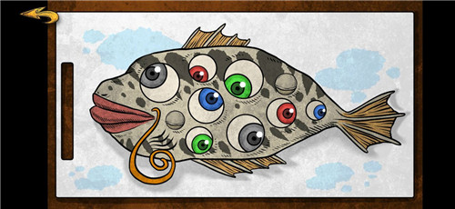 游戲不難,讓兩次點擊出的魚眼顏色一致就行,最后有一只眼睛關(guān)閉上了。點擊就可以獲得魚眼。