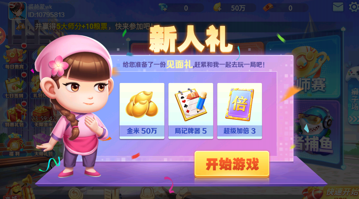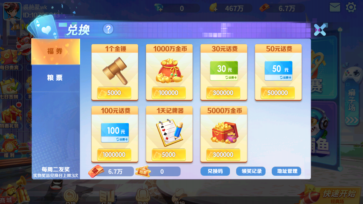 5、在大廳界面你可以選擇游戲模式,其中的大師賽可以獲得糧票和京東購物劵,其它模式可以獲得福劵 ,都可以用來兌換話費。