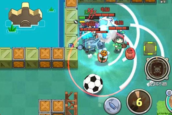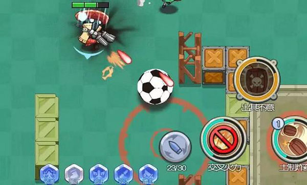 在踢球過程中,因為雙方都會為了將球踢進對方球門而去接近足球,而荒漠槍手可以將炸藥放在敵方踢球的必經(jīng)之路上,會使對面在踢球被眩暈與不踢之間選擇。