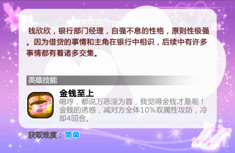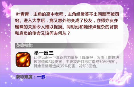 丁亞楠大招是群體封技,再加上本身不低的基礎(chǔ)攻速,以及前期易得的英雄碎片,讓她可以很容易的提升英雄圖鑒,加上基礎(chǔ)的防御屬性也比較高,不需要花太多心思就能在前期給你很大的幫助。唯一美中不足的是她的大招法攻加成不是很高,所以到了后期不能作為主C的擔(dān)當(dāng)。當(dāng)然由于大招的群體封技,到了后期在PVP時(shí)也能左右戰(zhàn)局。