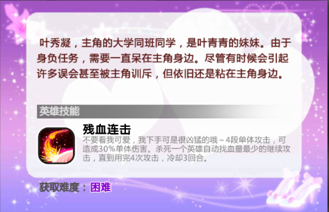 但也有些時(shí)候需要單刷,單刷時(shí)組隊(duì)的門面英雄必然是會(huì)派遣她出戰(zhàn),在整容中充當(dāng)主輸出,而其他英雄因?yàn)橘Y源不夠,就需要根據(jù)技能的特性,做一些選擇。