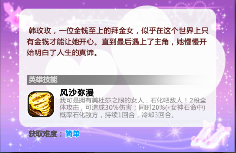 削弱敵方攻擊和防御,即使等級(jí)與主角有所差距,也能起到一定的作用,如果獲得了可以加入陣容。