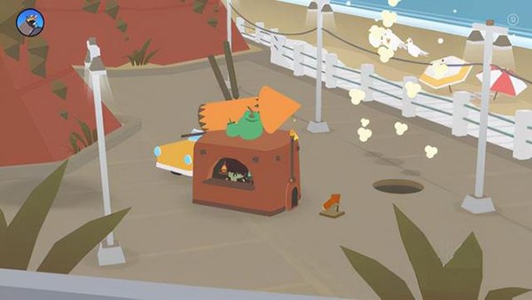 7、大鳥旁邊的籃子里裝著玉米、還有一個火堆。掉下來以后一起吃掉,地洞就又會爆出很多的爆米花。