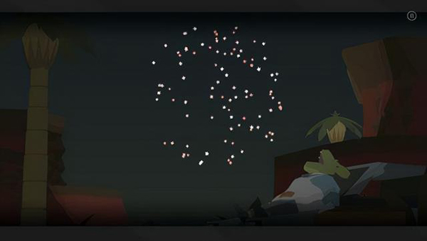6、山上坐著一只大鳥,還是按照一樣的步驟,點燃煙花,吞掉,移動到山下黑色影子的地方,煙花轟炸白色的大鳥。這個步驟需要重復(fù)2到3次,最終山崖會被轟斷,大鳥掉下來。