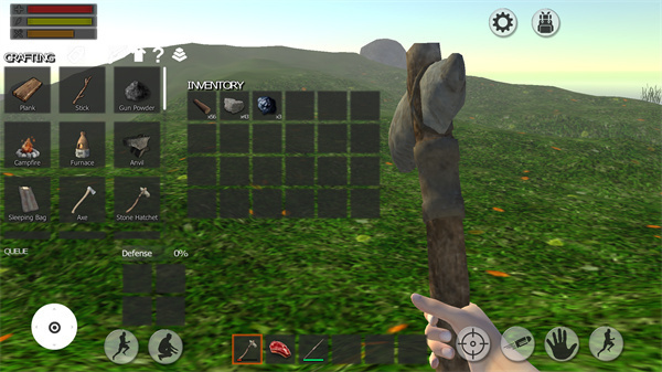 5、打開背包按鈕可以利用收集的各種材料進行合成和創(chuàng)造,巧妙的使用新的工具,能讓你存活的更輕松。