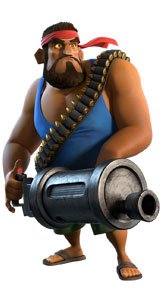 而胖子、妹子組合也是非常不錯(cuò)的,胖子血厚,天生就是個(gè)肉盾。妹子是個(gè)戰(zhàn)爭(zhēng)狂,具有高攻擊的特點(diǎn)??紤]胖子主要在前方掃除路障,吸引火力,妹子隨后摧毀敵軍防御,最終攻占海島。值得注意的是妹子血少,應(yīng)該優(yōu)先打掉火箭彈等防御。