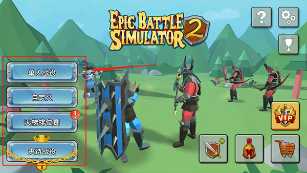 1、打開史詩戰(zhàn)爭(zhēng)模擬器2手機(jī)版,在主界面有單人戰(zhàn)役、自定義、天梯排位賽和史詩戰(zhàn)役四種模式,其中史詩戰(zhàn)役是需要通過單人戰(zhàn)役第50關(guān)才可以解鎖的,小編這里以單人戰(zhàn)役模式給大家大致介紹一下游戲玩法