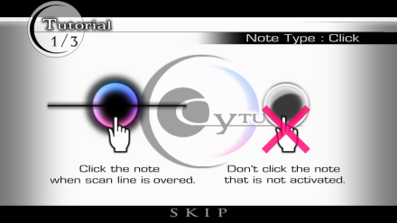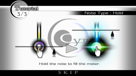 游戲有三種操作音符,分別為普通音符(click)、鎖鏈音符(drag)、長(zhǎng)按音符(hold)