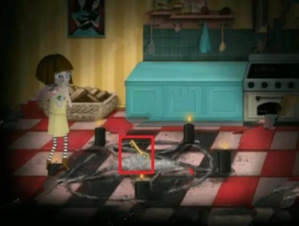 45、向左走下一個(gè)場(chǎng)景當(dāng)中,在桌上拿到一個(gè)鑷子,返回剛剛拿到黑色蠟燭的房間,拉下機(jī)關(guān),上到閣樓當(dāng)中。