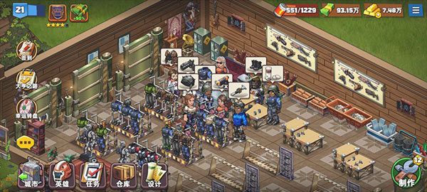 裝備:可用來賣錢,提升英雄力量,裝備的制作需要有員工、材料、圖紙。