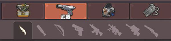 按照?qǐng)D片順序,分別為:利刃, 鈍器, 弓弩, 輕武器, 步槍, 重武器, 狙擊槍,散彈槍。