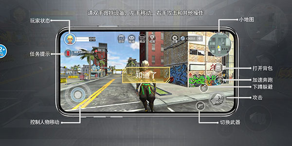1、下載后打開進(jìn)入游戲,首先通過下圖我們需要了解一下基本的操作鍵位,如移動(dòng)、攻擊等