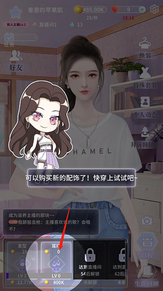 4、身為主播一定要保持直播間的靚麗形象,點擊發(fā)型可以解鎖新發(fā)型;