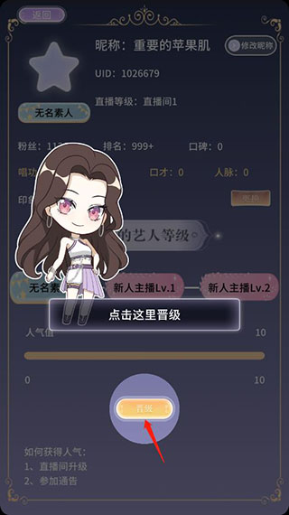 6、在左上角可以查看自己的粉絲、排名、口碑以及藝人等級等等;