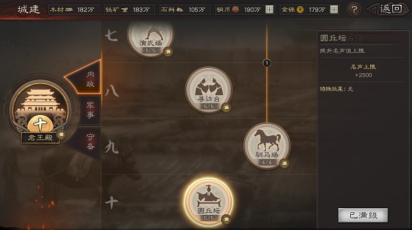 11)圓丘壇:提高名聲值上限(就是提高領(lǐng)地上限)