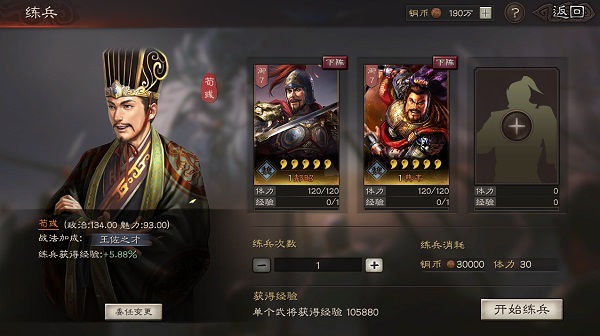 【最重要的友情提示】1個(gè)武將是獨(dú)吃8.4W經(jīng)驗(yàn),練2-3個(gè)武將是平分8.4W經(jīng)驗(yàn),總量不變,所以單人練兵最合適