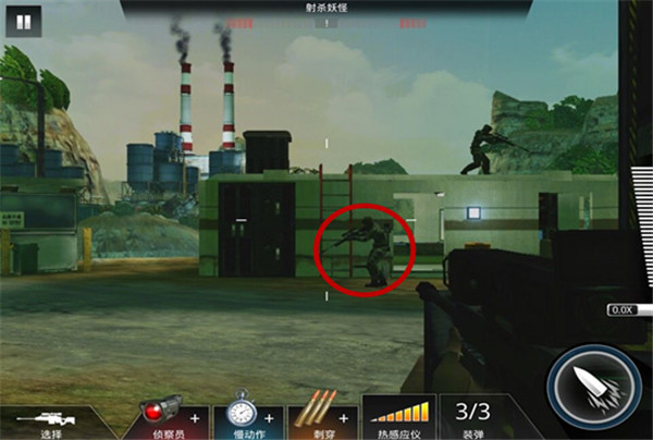 拉近你與敵人之間的視野距離之后,就要精確瞄準(zhǔn)敵人,準(zhǔn)備進(jìn)一步的攻擊。