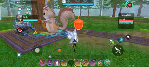 松鼠會(huì)不定時(shí)召喚炸彈,詳細(xì)表現(xiàn)為地上有雙層內(nèi)外擴(kuò)大的紅/橙色圓圈。見到時(shí)仔細(xì)觀察周圍,確定自己要閃避的位置處沒有炸彈。(松鼠被自己的炸彈炸到會(huì)掉血并眩暈,但是在巨人嘲諷的方法下并不值得特意追求此效果)