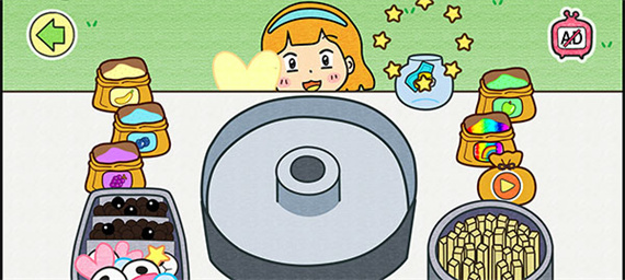 4、選擇對應(yīng)口味的顏色砂糖,點擊,就會出現(xiàn)小勺子自動放入制糖機器。