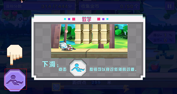 2、新手會有新手教程,以便于玩家更好、更快的熟悉游戲,點(diǎn)擊左邊按鈕即進(jìn)入下滑狀態(tài)