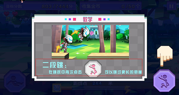5、經(jīng)典的兩鍵操作冒失,靈活的使用二段跳等技能來躲避各種障礙物,吃到高分道具
