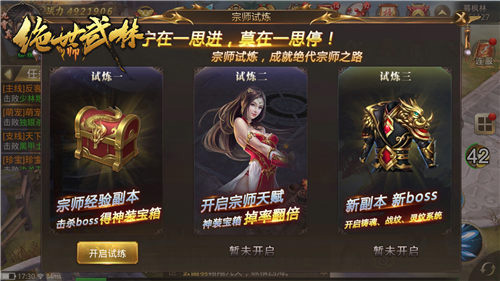 一、宗師系統(tǒng)介紹武林風(fēng)云再起,誰(shuí)能成為一代宗師執(zhí)掌江湖?《絕世武林》全新宗師系統(tǒng)震撼上線!新版本、新等級(jí)、新副本、新裝備、海量BOSS蓄勢(shì)待發(fā),武林新篇章就此打開(kāi),你準(zhǔn)備好了嗎?
