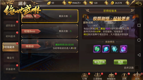 宗師試煉分為三個(gè)階段,完成相應(yīng)的階段條件,可解鎖對(duì)應(yīng)新玩法內(nèi)容。在玩家角色400級(jí)時(shí),將開(kāi)啟宗師試煉第一階段。完成該階段試煉后可解鎖宗師經(jīng)驗(yàn)副本。該副本需要玩家在有限時(shí)間內(nèi)擊殺副本中的怪物,每日可免費(fèi)挑戰(zhàn)2次,也可通過(guò)鼓舞增強(qiáng)自身實(shí)力。實(shí)力越強(qiáng),經(jīng)驗(yàn)越多,升級(jí)自然也越快!