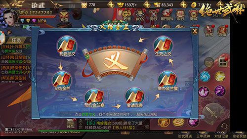 情義無(wú)雙,緣定武林!《絕世武林》緣份系統(tǒng)幫你與知己結(jié)拜,與紅顏結(jié)親。莫要猶豫,即可打開(kāi)游戲體驗(yàn)一番吧!