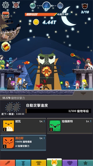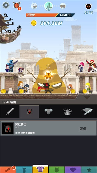除此之外,進入游戲玩一會就會發(fā)現(xiàn)底下的菜單欄從原來的4個變成了現(xiàn)在的6個,除了之前的主角欄、雇用英雄欄、神器欄和商店之外,這次還多了裝備和寵物兩欄,別小看這兩個多出來的,這讓游戲的成長系統(tǒng)多了兩個也能讓游戲變得更耐玩,裝備可以改變主角的裝扮也可以使自己變得更強大。寵物也是很強的,在游戲中你將獲得多個寵物,在技能樹里還特意有寵物的加點,寵物是隔一段時間會出現(xiàn)在哦,游戲中,有主動技能和被動技能,可以升級,算是半個英雄了。