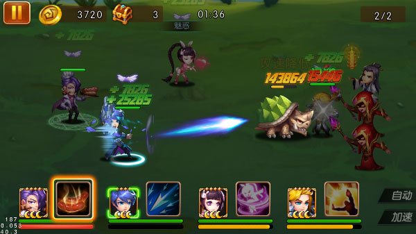 4)集火:點(diǎn)擊戰(zhàn)場中的怪物,這意味著集火,所有英雄都會攻擊那個(gè)怪物。