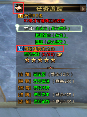 1、 玩家完成47級(jí)主線任務(wù)后將開啟每日任務(wù),可通過游戲主界面右側(cè)任務(wù)追蹤欄上的入口進(jìn)入: