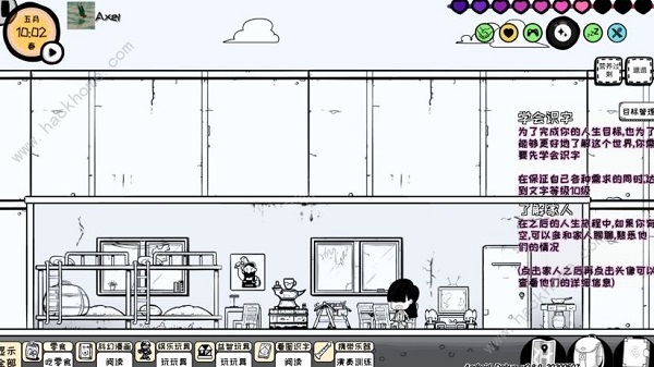 左數(shù)第三個(gè)娛樂(lè):很多事情都可以提高,但不知道是bug還是設(shè)定,玩玩具不能提高反而降低。另閱讀部分書(shū)籍時(shí)會(huì)出現(xiàn)先上升后下降。