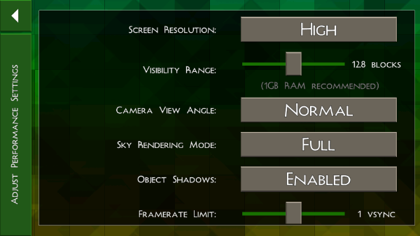 2、“settings”中的“performance”中,我們還可對(duì)游戲中的畫質(zhì)進(jìn)行自定義設(shè)置,對(duì)于設(shè)備配置較低的玩家,可適當(dāng)?shù)慕档彤嬞|(zhì),來提高游戲的流暢性;