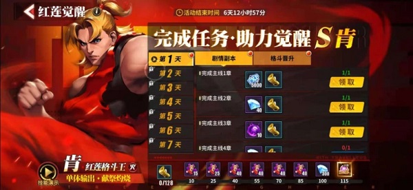 1. 開測第一天會出上線紅蓮覺醒活動,完成指定任務(wù),達(dá)到一定進(jìn)度即可獲取肯的碎片,任務(wù)一共七天,結(jié)束后可以將主角肯提升至S級,大家可以根據(jù)任務(wù)指引盡快完成;