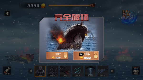 3、選擇各種手段,對(duì)船只進(jìn)行攻擊,使其沉沒(méi)