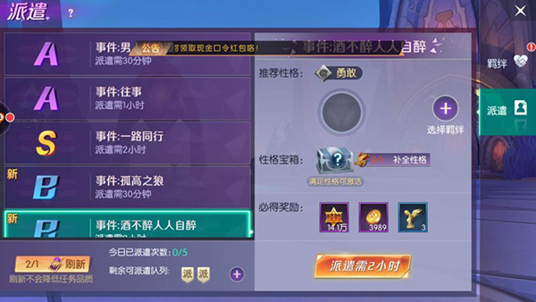 3、每天這兩樣做完,開始點羈絆,放出去,刷的早,能早點刷新任務(wù)。