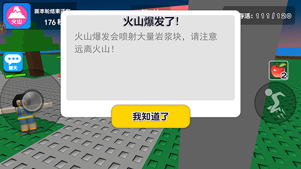 3、游戲左上角會顯示當前的自然災害種類以及結(jié)束倒計時,我們需要在倒計時結(jié)束前存活下來。