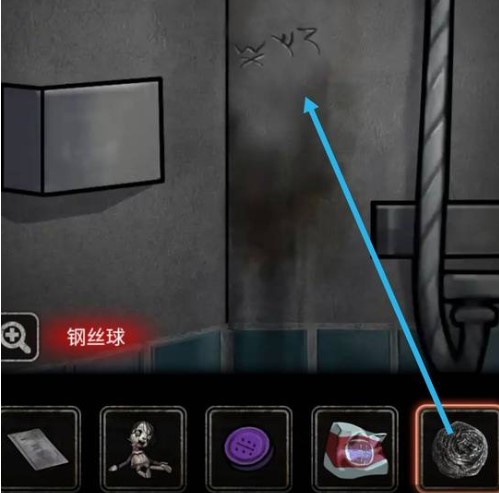 進入浴室,獲得洗衣粉和鋼絲球,使用鋼絲球擦掉污跡