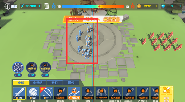 1、通過左下角點擊兵種,來放置想要排布的士兵。