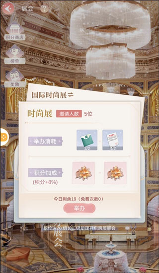 2、每天有一次機會免費舉辦展會,最多邀請5個玩家參展,參展人數(shù)越多積分越高哦!可使用“展會邀請函+展會批文”增加舉辦次數(shù)。