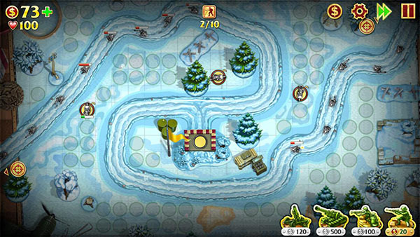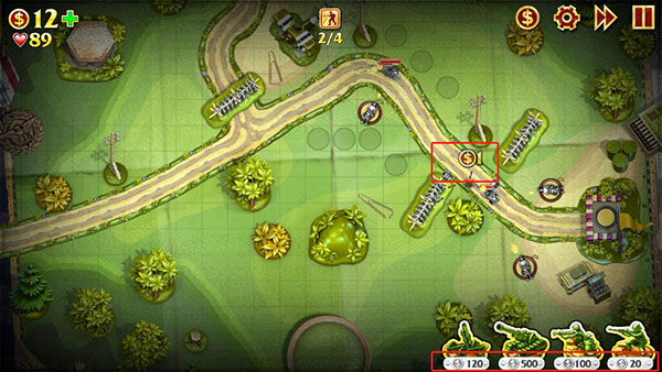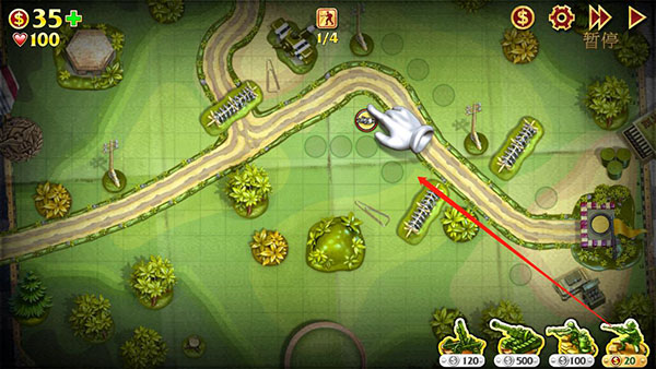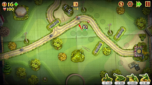 游戲中的防御塔一共有著四種類型,分別為步槍兵(20$)、火焰噴射兵(100$)、加農(nóng)炮(500$)和防空炮(120$),其中的防空炮只能夠用來(lái)對(duì)付天空中的飛機(jī),對(duì)于地面的部隊(duì),則不造成傷害,而加農(nóng)炮的攻擊速度比較的慢,又來(lái)對(duì)付裝甲車有著奇效,而步槍兵和火焰噴射兵則是主要用來(lái)對(duì)于步兵和輕甲車的,其中火焰噴射兵屬于AOE傷害。