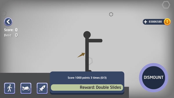 3、通過(guò)長(zhǎng)按左下角DISMOUNT控制火柴人行動(dòng)。
