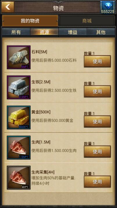 玩家可以在游戲內(nèi)獲得各種資源獎(jiǎng)勵(lì),使用后可以立即獲得大量資源或是資源采集加速的增益效果。