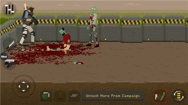 6、采用的是像素的風(fēng)格,讓你享受絕佳的戰(zhàn)斗快感,使喪尸不恐怖。