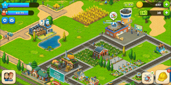 在游戲里,玩家就是鎮(zhèn)長(zhǎng)。你可以給自己的小鎮(zhèn)命名,可以種植各種農(nóng)作物;可以建造工廠來(lái)加工農(nóng)作物;繼而發(fā)展畜牧業(yè),還可以建造咖啡館、電影院、畫廊等社區(qū)建筑擴(kuò)大人口上限;可以建造住房來(lái)招攬更多的居民。這就像是夢(mèng)幻的小鎮(zhèn),親手制造產(chǎn)業(yè)鏈。一、種植:小麥?zhǔn)敲赓M(fèi)的,成長(zhǎng)需要2分鐘。剛剛開始的玩家可以反復(fù)種植出售小麥獲得金幣,由于倉(cāng)庫(kù)是有上限,所以盡量合理安排庫(kù)存。玉米購(gòu)買需要1個(gè)金幣,成長(zhǎng)需要5分;胡蘿卜購(gòu)買需要2個(gè)金幣,成長(zhǎng)需要10分鐘;甘蔗購(gòu)買需要3個(gè)金幣,成長(zhǎng)需要20分鐘。