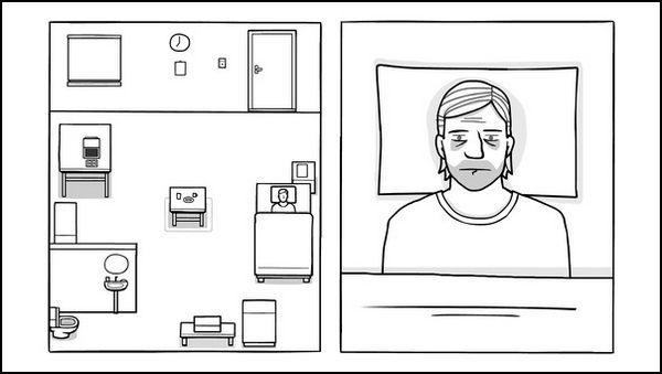 這一天可以看到窗外在下雨,并且我們也可以注意到,之前每一天窗外的光線和日程表是晝夜相反的,景色也可以看到是后面Bob和Laura初見的地方。由此可以推測,我們通過Bob視角看到的白色房間內(nèi)的事情是現(xiàn)實與夢境的拼接。當Bob被提取難過的記憶時,窗外開始下雨,Bob后來腐化時,窗外徹底變成了黑夜。